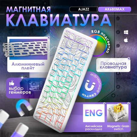 Магнитная игровая проводная клавиатура AJAZZ AK680 MAX Magnetic Grain Switch с подсветкой RGB и алюминиевым плейтом