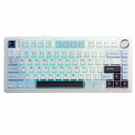 Механическая клавиатура AULA F75 Blue Leobog Reaper (9241) представляет собой уникальное сочетание компактности, функциональности и индивидуальной настройки. Высокое качество сборки и продуманная эргономика делают эту клавиатуру отличным выбором для дома и офиса. Три режима подключения (Bluetooth, USB, радиоканал) обеспечивают максимальное удобство и удовольствие от использования. Яркая RGB-подсветка и поддержка HotSwap делают клавиатуру еще более привлекательной для геймеров и профессионалов. Эргономичная конструкция и компактная (TKL) конструкция делают клавиатуру удобной для использования на любом устройстве. Клавиатура оснащена 80 механическими переключателями Leobog Reaper, которые обеспечивают четкий и быстрый отклик. Ход клавиш составляет 4 мм, что гарантирует комфорт при длительной работе. Беспроводная клавиатура AULA F75 Blue Leobog Reaper поддерживает радиус действия беспроводной связи до 10 метров. Время работы на одном заряде составляет до 17,5 часов со световыми эффектами и до 266 часов без подсветки. В комплект поставки входит клавиатура, кабель USB, руководство пользователя Выбирая механическую клавиатуру AULA F75 Blue Leobog Reaper (9241), вы получаете надежный и функциональный инструмент для работы и развлечений.