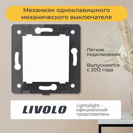 Механизм одноклавишного механического проходного выключателя света Livolo белого цвета. Простой и надежный проходной выключатель Livolo для включения одного источника света. Проходные выключатели устанавливаются для управления одной люстрой из нескольких мест. Для управления их двух мест используйте 2 проходных выключателя. Для управления их трёх мест используйте 2 проходных и один перекрёстный (Код Товара: 697948792 ) выключатели. Устанавливается в стандартный круглый подрозетник. Механизм устанавливается в стеклянную рамку Livolo для розеток (продаётся отдельно Код Товара: 327552245 ). Также возможно установка в комбинированные рамки на 2-5 постов вместе с другими механизмами.