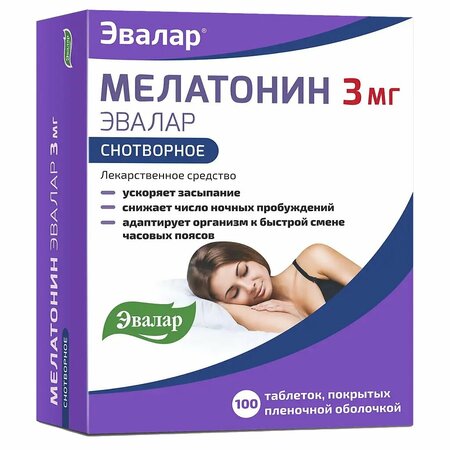Мелатонин - синтетический аналог гормона шишковидного тела (эпифиза); синтезирован из аминокислот растительного происхождения.Оказывает адаптогенное, седативное, снотворное действие. Нормализует циркадные ритмы.Увеличивает концентрацию гамма-аминомасляной кислоты (ГАМК) и серотонина в среднем мозге и гипоталамусе, изменяет активность пиридоксалькиназы, участвующей в синтезе ГАМК, дофамина и серотонина.Регулирует цикл сон-бодрствование, суточные изменения локомоторной активности и температуры тела, положительно влияет на интеллектуально-мнестические функции мозга, на эмоционально-личностную сферу. Способствует организации биологического ритма и нормализации ночного сна, обладает снотворным эффектом. Улучшает качество сна, ускоряет засыпание, снижает число ночных пробуждений, улучшает самочувствие после утреннего пробуждения, не вызывает ощущение вялости, разбитости и усталости при пробуждении. Делает сновидения более яркими и эмоционально насыщенными.Адаптирует организм к быстрой смене часовых поясов, снижает стрессовые реакции, регулирует нейроэндокринные функции.Адаптирует организм метеочувствительных людей к изменениям погодных условий.Проявляет иммуностимулирующие и антиоксидантные свойства.Не вызывает привыкания и зависимости.