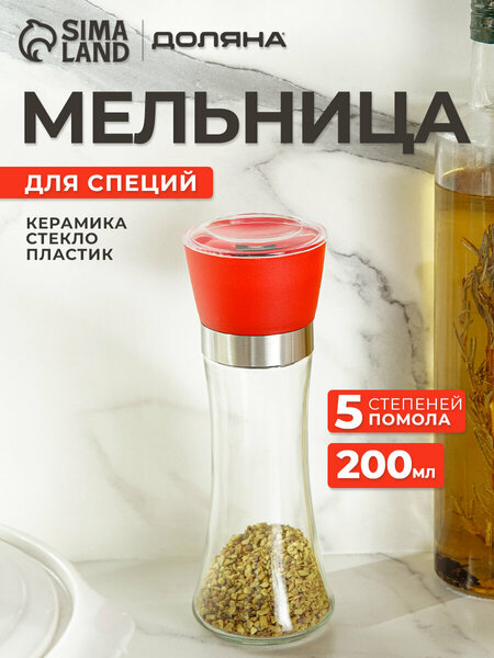 Мельница для специй Доляна «Модерн» 200 мл – стильный и функциональный аксессуар для вашей кухни. Изготовленная из высококачественных материалов – стекла и пластика, мельница обеспечивает прочность и долговечность изделия. Керамический механизм гарантирует равномерное и качественное перемалывание соли и специй, а регулировка степени помола позволяет контролировать консистенцию специй в соответствии с вашими предпочтениями. Компактные размеры 6,5х18,8 см и яркий красный цвет делают ручную мельницу удобной для хранения на кухонной полке или в шкафу. Прозрачная часть изделия позволяет контролировать остаток специй, что делает использование мельницы еще более удобным. Мельница для перца Доляна «Модерн» станет незаменимым помощником на вашей кухне, обеспечивая удобство и комфорт в процессе приготовления пищи.