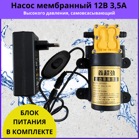 Уважаемый покупатель, нам поступает много отзывов, о том, что покупателей смущает наличие остатков воды в насосе. Каждый насос проходит заводское испытание на работоспособность, поэтому в насосе остается вода, это нормально. Будьте уверены, вы приобретаете абсолютно новый товар. Спасибо за покупку. Насос мембранный с блоком питания имеет рабочее напряжение 12В и максимальное потребление 3,5А или 36Вт. Идеально подходит для сада дома или гаража. Самовсасывающий насос может быть использован для охлаждения самогонного аппарата, для перелива браги или вина, для фильтроватьной установки для самогона. Решает много задач в огороде полив, опрыскивание, создание мини водопада или мини фонтана в пруду. Высокое давление которое создает насос позволит соорудить водопровод в гараже или на приусадебном участке. Длина провода 1м, он оснащенен кнопкой вкл-выкл. Диаметр штуцеров 10мм, форма "Елочка".