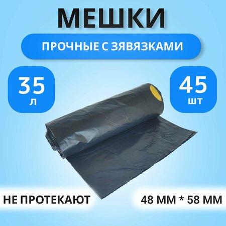 Прочные мешки для мусора объемом 35 литров пригодятся в хозяйстве и найдут широкое применение. Размер одного пакета 48 мм на 58 мм, что идеально подходит для большинства мусорных ведер объемом до 35 литров. Пакеты с удобными завязками-ручками, идеально подходят для дома, дачи и офиса. Благодаря высокой плотности 25 мкм полимерного материала, они надежно удерживают запах и влагу, сохраняя дно контейнера сухим и чистым. В упаковке 45 пакетов (3 рулона по 15 штук). Пакеты разделены специальной перфорацией для удобства отрыва. Применение пакетов для мусора не ограничивается домашним использованием, они также подходят для фасовки хозяйственных товаров, сортировки пищевых отходов, упаковки строительного мусора. Мешки не протекают и не пропускают воздух, что даст Вам комфорт при использовании. Продукция сертифицирована и прошла все необходимые проверки.