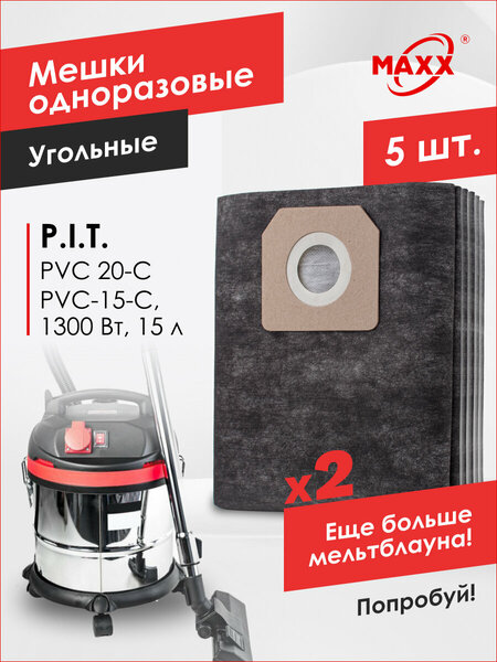 Мешки PRO для пылесоса угольной серии (5 сменных мешков в комплекте) из специально разработанного для компании MAXX материала произведены для пылесосов PIT PVC 20 и PIT PVC-15-C. Мешок состоит из 3х слоев многослойного нетканного микроволокна с фланцем-манжетой, надежно фиксирующейся на материале мешка с помощью уникальной эмульсии. Технологи уделяют особое внимание разработке мешка под конкретную марку и модель пылесоса. Таким образом вы можете быть уверены в том, что данный пылесборник подойдет под ваш пылесос. Мешок выдерживает все виды мусора, в т. ч. осколки стекол, гвозди, острые камни и пр. строительный мусор. Устойчив к воздействию влаги. Многослойное микроволокно материала мешка защитит воздух от мелкой пыли, пылевых клещей, бактерий и пр. микроорганизмов при правильном использовании мешка-пылесборника В нашем ассортименте классические белые одноразовые синтетические пылесборники, многоразовые мешки на молнии, липучке, зажиме класса фильтрации от M до H и выше. С полным ассортиментом можете ознакомиться на витрине нашего магазина или обратиться с вопросом к нашим специалистам. Мешок пылесборник специально разработан для пылесоса: • PIT: PVC 20 PVC20-C EPPVC20-C/27 EPPVC20-C/27м PVC15-C, 1300 Вт, 15 л.