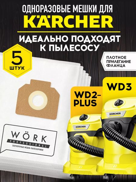 Сверхпрочные мешки для пылесоса Керхер WD 3, WD 3 premium, Karcher WD 2 PLUS, MV 3 / мешки для пылесоса Karcher WD 3, WD 3 premium, SE 4002, MV 3 (полный список совместимых моделей ниже), в комплекте – 5 шт. фильтр мешка для пылесоса Керхер. Это высококачественные аксессуары для профессиональных строительных пылесосов. Они обеспечивают надежную защиту от влаги и пыли, а также легко собираются без повреждения саморезы и строительный мусор. Влагостойкие фильтр мешки созданы с помощью ультразвуковой спайки швов, что отличается невероятной прочностью и устойчивостью на разрыв. Одноразовые мешки для профессиональных пылесосов Керхер / Karcher имеют большой ряд преимуществ, одним из которых является объем мешка – 20 литров! Специальный армированный слой на внутренней части синтетического фильтр мешка, который в разы увеличивает прочность мешка, позволяет без деформации и повреждения собирать острые предметы, осколки стекла, саморезы, влажный мусор. Мешки для пыли Керхер / Karcher от компании WORK состоит из многослойного синтетического сверхпрочного материала, который обладает повышенный эффективным свойством фильтрации сбора пыли и строительного мусора, в том числе мельчайшую взвесь. Тип аксессуара – пылесборник для пылесоса Керхер, (мешки для промышленных пылесосов Karcher, мешки для пыли Керхер) который обеспечивает эффективную очистку и защиту мотора для строительного пылесоса от пыли и мусора. Мешки пылесборники совместимы с моделями пылесосов Керхер / Karcher : Karcher WD 3, Karcher WD 2 PLUS, Karcher MV 3, Karcher A 1000, Karcher A 1001, Karcher A 2200, Karcher A 2201, Karcher A 2204 . Karcher A 2254 SERIE, Karcher A 2204 FIFA, Karcher A 2206 X, Karcher A 2224 PT, Karcher A 2231 PT, Karcher A 2234 PT, Karcher A 2236 X PT, Karcher A 2251 ME, Karcher A 2254 ME, Karcher A 2500, Karcher A 2504 . KarcherA 2554 SERIE, Karcher A 2534 PT, Karcher A 2554 ME, Karcher A 2574 PT, Karcher A 2604, Karcher A 2604 . Karcher A 2634 SERIE, Karcher A 2654, Karcher A 2654 ME, Karcher A 2656 X PLUS, Karcher A 2674 PT PLUS, Karcher A 2675 JUBILEE, Karcher A 2701, Karcher A 2901, Karcher A 3100 . Karcher A 3199 SERIE, Karcher K 1000, Karcher MV 3, Karcher MV 3 CAR KIT, Karcher MV 3 DAKAR, Karcher MV 3 FIREPLACE KIT, Karcher MV 3 P, Karcher MV 3 P EXTENSION KIT, Karcher MV 3 PREMIUM, Karcher SE 4001, Karcher SE 4002, Karcher SE 4002 PLUS, Karcher WD 3, Karcher WD 3 BATTERY, Karcher WD 3 BATTERY SET, Karcher WD 3 CAR VAC, Karcher WD 3 DAKAR, Karcher WD 3 EU II, Karcher WD 3 FIREPLACE KIT, Karcher WD 3 P EXTENSION KIT EU II, Karcher WD 3 P PREMIUM, Karcher WD 3 P PREMIUM HOME, Karcher WD 3 P PREMIUM JUBILEE, Karcher WD 3 PREMIUM CAR FOOTBALL EDITION, Karcher WD 3.200, Karcher WD 3.300, Karcher WD 3.300 M, Karcher WD 3.370 M, Karcher WD 3.500, Karcher WD 3.500 P, Karcher WD 3.800, Karcher WD 3.800 M, Karcher WD 3.800 M ECOLOGIC Купить мешки для пылесоса Керхер / Karcher вы можете как в онлайн маркетах, так и в офлайн магазинах – Леруа Мерлен. Бренд совместимого пылесоса: Керхер (KARCHER) Количество в комплекте: 5 шт. Объем строительного мешка: 20 литров. Тип аксессуара: пылесборник для профессиональных строительных пылесосов, фильтр мешки для пыли, мешки для промышленных пылесосов. Артикул: Pro04s5 Бренд производитель: Wörk