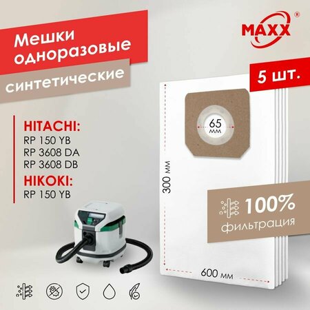 Меняйте мешки вовремя и ваш пылесос будет работать эффективно. Мешки MAXX для пылесоса разработаны для вашего пылесоса. Одноразовые мешки удобны в использовании. Специальный синтетический материал обеспечивает надежное удержание пыли и грязи, делая уборку легкой и быстрой. Универсальные модели подходят для указанных пылесосов. Они отлично справляются с задачей фильтрации загрязнений, устойчивы к важному мусору в отличие от бумажных пылесборников. Одноразовые универсальные фильтр мешки просты в замене: просто выбросьте старый пылесборник, установите новый - и готово. Универсальные одноразовые варианты экономят ваше время. Сменные мешки просты в использовании и обладают повышенной фильтрацией. Это важно для здоровья семьи и персонала. Синтетический фильтр качественно защищает двигатель вашего пылесоса, продлевая его срок службы, благодаря высоким фильтрующим свойствам и высокому содержания мельтблауна. Пыль больше не станет проблемой: мощный мешок для улавливания всех мелких частиц позаботится об этом. Пылесборники легко фиксируются внутри пылесоса, обеспечивая надежную работу без потерь мощности всасывания. Комплектация: 5 одноразовых мешков для пылесоса. Мешки для пылесоса: • HIKOKI: RP 150 YB RP150YBNSZ • HITACHI: RP 150 YB RP 3608 DA RP 3608 DB 93116246 Хитачи РП 150УБ