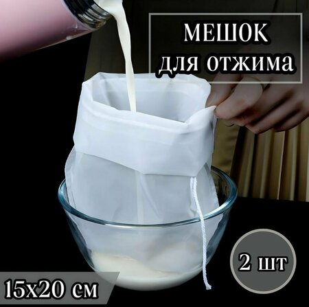 Мешок-фильтр для отжима творога, сока, сыра, мешки для хранения орехов, круп, 200х150 мм, плотность 120 меш Мешок-фильтр изготовлен из прочного нейлона, который не впитывает запахи и может использоваться неоднократно. Благодаря двойному шву и расположению его с внешней стороны, мешочки обеспечивают дополнительную защиту от возможных разрывов. Мешки подходят для использования при высоких температурах, так как материал нейлона выдерживает температуру до 120 градусов. Уход за мешочками прост: их можно мыть с помощью средств для мытья посуды или положить в посудомоечную машину. Мешки могут быть использованы не только для процеживания и фильтрации, но и в качестве многоразовых мешков для хранения орехов, хлеба или фруктов. Комплектация: 2 мешка. Тип: мешок для сыра. Высота: 20 см. Объем: 0,5 л. Длина: 15 см. Дополнительная информация: Перед применением постирать в тёплой воде.