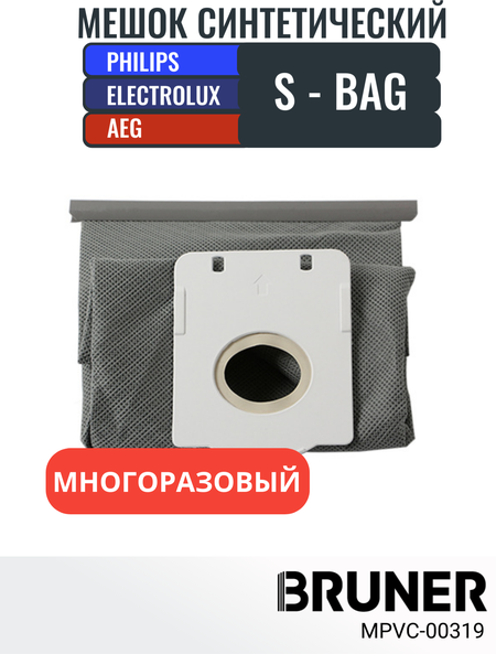 Мешок многоразовый S-BAG для пылесосов Philips серии FC Electrolux серии EEQ ES JM Z ZP BRUNER (MPVC-00319) - мешок со съёмным многоразовым зажимом, выполнен из синтетического волокна.
