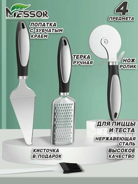 Идеальный набор Messor из четырех предметов для приготовления пиццы и теста. Роликовый ножик станет незаменимым кухонным инвентарем, обеспечивая легкость и точность в резке. Изготовленный из высококачественной нержавеющей стали, он гарантирует долговечность и надежность. Круглый нож ролик подходит для резки пирогов, чебуреков и других кулинарных изделий. Пиццерезка отрежет ровные порции, что особенно важно при подаче выпечки на стол. Стильный дизайн и эргономичные ручки из прочного пластика делают использование этого инструмента комфортным и приятным. Для безопасного применения оснащен ограничителем стоппером для защиты рук. В комплект с ножом входит ручная терка, которая подойдет для овощей, сыра или цедры. Эти универсальные инструменты позволяет вам готовить разнообразные блюда. Металлическая лопатка с зубчатым краем для аккуратной и удобной подачи. Он станет вашим верным помощником как в домашней кухне, так и в профессиональной. Высокое качество материалов и продуманный дизайн - отличным выбором для всех, кто ценит удобство и функциональность.