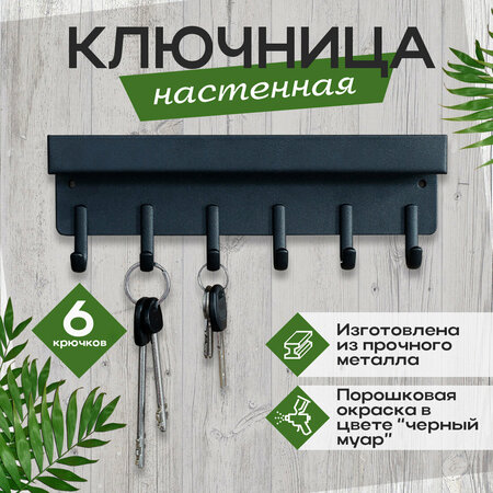 Металлическая ключница настенная с 6 крюч и магнитной лентой Uno