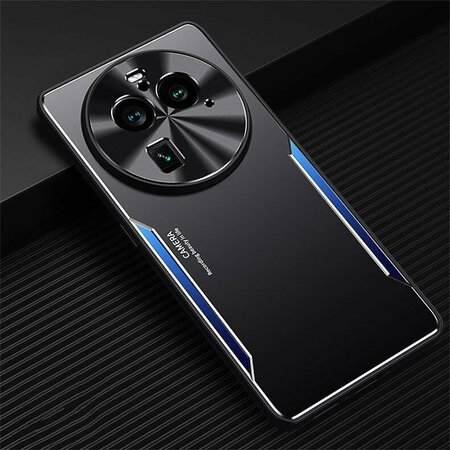 Металлическая задняя чехол панель-крышка-накладка MyPads «Metallo di Lusso» из авиационного алюминия для OPPO Find X6 Pro черная с синими вставками