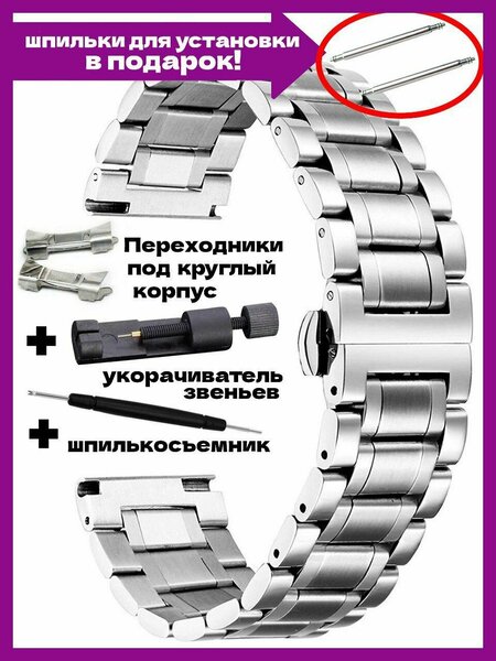 Достоинства:Качество хорошее. Смотрится хорошо. Богатый комплект. Недостатки:вот только шпильки было бы хорошо класть как на смарт часах, с лапкой. Комментарий:подходит ко всем часам 22мм. Прикреплял на Samsung watch 3, но там часы черные, смотрится не очень. Сейчас поставил на Huawei watch gt 5, смотрится как родной. Очень нравится