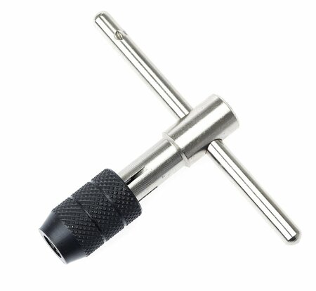 Используется для нарезания резьбы в труднодоступных местах. Оборудован съемной рукояткой для удобства хранения. Сталь 45 Хромирование, фосфатирование