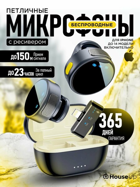 Петличный микрофон для телефона беспроводной HouseUp, петличка для камеры, микрофон для iphone Lightning, 2 шт