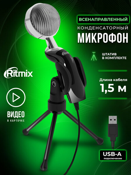 Микрофон RITMIX RDM-127 USB Black, со штативом, проводной 1,5м