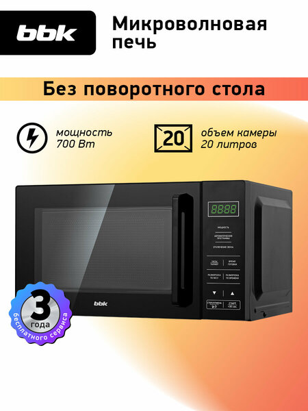 Микроволновая печь без поворотного стола 20MWS-750S/B в стильном черном цвете — идеальное решение для быстрой и удобной готовки в вашем доме! Объем 20 литров и мощность 700 Вт позволяют эффективно разогревать и готовить разнообразные блюда. Современное электронное управление с удобным LED-дисплеем обеспечивает простоту настройки и контроля процесса. Отсутствие поворотного стола в микроволновке обеспечивает равномерное распределение микроволн по всему объему камеры, способствуя однородному разогреву блюд, а керамическая поверхность отличается высокой прочностью, устойчивостью к царапинам и легкостью в уходе — она не впитывает запахи и быстро очищается от загрязнений, сохраняя презентабельный вид на долгие годы. Автоматические программы приготовления помогут быстро подобрать оптимальный режим для ваших любимых блюд. Панель управления полностью на русском языке, а звуковой сигнал уведомит вас о завершении работы. Для безопасности предусмотрена функция автоматической блокировки панели управления, которая защитит устройство от случайных нажатий, в том числе детей. СВЧ печь 20MWS-750S/B — сочетание практичности, надежности и современного дизайна для вашей кухни! Особенности : ∙ Электронное управление ∙ LED-дисплей ∙ Без поворотного стола, керамическая поверхность ∙ Автоматическое приготовление блюд ∙ Панель управления на русском языке ∙ Звуковой сигнал ∙ Функция автоматической блокировки панели управления Комплектация: Микроволновая печь, Руководство по эксплуатации, Гарантийный талон.