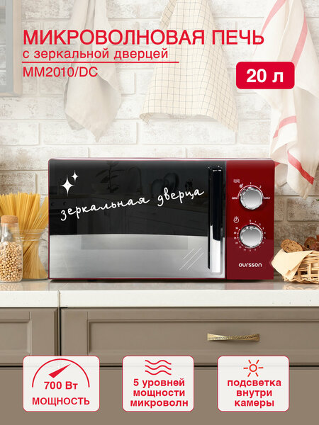 Микроволновая печь Oursson MM2010 - это отдельностоящая модель объемом 20 литров, выполненная в классическом дизайне с зеркальной дверцей. Управление печью осуществляется с помощью двух поворотных переключателей, которые позволяют регулировать мощность микроволн и время приготовления. Мощность микроволн составляет 700 Вт, а количество уровней мощности - 5. Модель оснащена базовым функционалом, включая деликатную разморозку, таймер на 35 минут со звуковым сигналом и 5 ступеней регулировки мощности. Внутреннее покрытие камеры выполнено из эмали, что обеспечивает долговечность и простоту ухода. Особенностью микроволновой печи является подсветка камеры, которая позволяет контролировать процесс приготовления пищи. Модель также оснащена режимом разморозки, ускоренной разморозкой и звуковым сигналом отключения. Размеры микроволновой печи составляют 45,4 см в ширину, 26,1 см в высоту и 35,3 см в глубину. Вес устройства - 10,3 кг. Микроволновая печь Oursson MM2010 - это надежное и функциональное решение для приготовления и разогрева пищи.