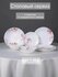 Достоинства: Очень красивая, нежная посуда, но немного меньше, чем я ожидала.. У меня есть примерно такой набор, но там тарелки чёт больше, да и салатник тоже.