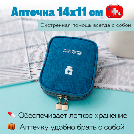 Мини аптечка дорожная / В сумку / Органайзер для лекарств, 14*11*2 см, непромокаемая, голубая