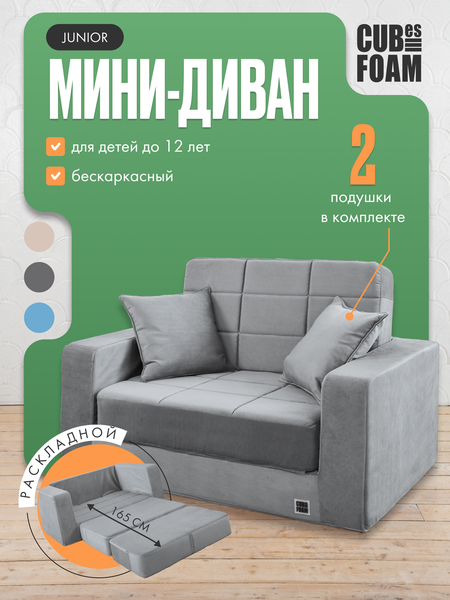 Этот раскладной бескаркасный мини-диван идеально подойдет для детей до 12 лет. В комплекте две мягкие подушки, которые сделают ваш отдых еще более комфортным. Диван отличается упругостью и долговечностью благодаря наполнителю из высококачественного поролона. Качественная фурнитура и усиленные швы гарантируют надежность и долгий срок службы. Высококачественная ткань обеспечивает приятные тактильные ощущения, а съемный чехол можно легко стирать. Даже ребенок сможет легко разложить этот компактный и мобильный диван. Благодаря своей легкости, бескаркасная конструкция значительно легче аналогичных каркасных моделей, что облегчает его перемещение. Диван отлично упакован, что гарантирует сохранность товара при доставке.