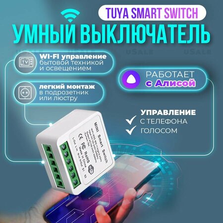 Миниатюрный умный WiFi выключатель mini Smart Switch 16A Tuya mini является элементом Умного дома и позволяет управлять сетью 220В с током нагрузки 16А через приложение на телефоне и при необходимости настраивать сценарии (алгоритмы) работы. Находясь в любой точке мира через интернет Вы можете в русскоязычном приложении (Smart Lifе, EwеLink, Tuya Smart, Алиса, Амазон Аlеха, Гугл Аssistаnt, IFТТТ, Гугл Nеst) управлять переключателем, задавать временные интервалы автоматического переключения, настраивать повторы срабатывания по дням недели. Чтобы подключиться к приложению Smart Lifе или др: 1. Скачайте приложение и зарегистрируйтесь в нём. 2. Включите на телефоне WiFi, геолокацию и Bluetooth. 3. Нажмите и удерживайте на реле кнопку в течение 8-12 секунд, пока индикатор не начнёт мигать. 4. В приложении вашего голосового помощника (например, Алиса, Гугл Аssistаnt и т. п.) на телефоне нажмите "+" выберите "устройства" найдите в списке Smart Lifе и привяжите приложение. Подойдет для управления освещением, подсветкой и т. д.