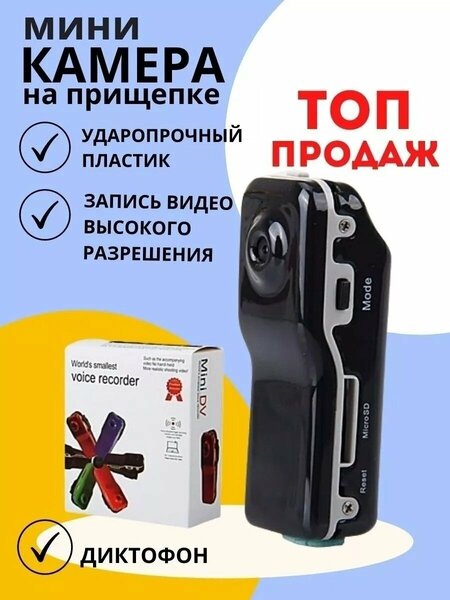 Мини-видеокамера/диктофон Mini Dv World Smallest Voice Recorder - мини камера с датчиком звука. Беспроводная камера способна работать как в обычном режиме, так и по датчику звука. Как только уровень шума достигает 65 децибел (хлопок двери или начало разговора), автоматически начинается видеозапись. Скрытая камера способна находиться в режиме ожидания срабатывания по датчику звука до 10 дней. В комплект поставки помимо камеры, входят различные крепежные приспособления, позволяющие закрепить устройство в любом месте, а так же силиконовый чехол для использования во всепогодных условиях. Заряжается от USB кабеля или адаптера электросети 220 В. Преимущества мини-видеокамеры/диктофон Mini Dv World Smallest Voice Recorder: Миниатюрные размеры Позволяет непрерывно записывать видео на карту памяти до 1,5 часов Не требует установки программ или драйверов для записи и просмотра видео Автоматическая видеозапись Угол обзора 72 градуса Емкость батареи 230 мАН USB порт: USB 1.1/2.0 Поддерживаемый объем СD карты до 8 Гб Время работы в режиме записи 90 минут Простота и удобство в использовании Изготовлена из высокопрочных и экологически чистых материалов