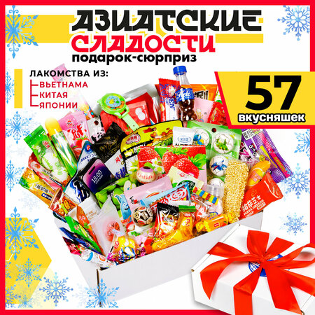 Подарочный набор Азиатских сладостей от МираВкус - это яркий необычный сюрприз для Ваших близких! Собранный с огромной любовью к Азиатским вкусняшкам наш сладкий бокс откроет Вам невероятную палитру вкусов Китая и Японии, культура Азиатской еды неповторима и прекрасна - неожиданные сочетания сладкого, соленого, кислого удивят самых привередливых гурманов! Вкусный подарок от МираВкус порадует Вас жевательными конфетами с фруктовой и молочной начинками, Японским пирожным моти, ароматными вкусными жевательными резинками, прикольной шипучкой, йогуртовыми палочками, вкуснейшими мармеладными и желейными конфетами, нежным печеньем, безалкогольными сладким напитком на основе фруктового сока и множеством вкусных и полезных сладостей! Многие вкусняшки напоминают Тайские и Корейские конфеты. Яркие мини сладости в индивидуальных упаковках доставят радость маленьким детям, подросткам, взрослым, их удобно брать в садик и школу, на пикник и на работу. Любителей кислых сладостей покорит супер кислый мармелад, кислые леденцы, шоколад с игрушкой - аналог kinder сюрприз и необычные снеки приведут в восторг любимого ребёнка! Важное преимущество Азиатских вкусняшек над Европейскими заключается в натуральном составе. В странах Азии не используют химические добавки – в необычных конфетах нет ГМО, консервантов, искусственных красителей и ароматизаторов, а в качестве подсластителя в небольших количествах используется сахар природного происхождения, ими можно лакомиться маленьким детям, людям склонным к аллергии и тем, кто сидит на диете. Это прекрасная альтернатива чипсам и шоколадным батончикам! Набор конфет от МираВкус - восхитительный сюрприз для девушки или мамы на день рождения! Аккуратная белоснежная коробка с красным бантом из широкой атласной ленты удивит Вашего сына или дочку в качестве подарка на выпускной, станет замечательным вкусным сюрпризом для детей на утреннике в детском саду! Редкие вкусняшки порадуют поклонников Азиатской культуры и Аниме, станут уместны в качестве презента по любому поводу. Подарочный набор экзотических продуктов приведет в восторг любого сладкоежку, папа, дедушка, брат или парень будут приятно удивлены получив необычный сладкий подарок! Подарите оригинальный сундучок вкусностей подруге, сестре, бабушке или свекрови на семейное торжество, яркий подарок и разнообразная палитра вкусов создадут атмосферу волшебства и праздника в вашем доме!