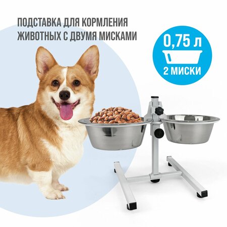 Миска для кормления животных "Мухтар" обладает следующими свойствами. Содействует правильному развитию скелета и осанки. В соответствии с рекомендациями ведущих кинологов при кормлении собак миски с кормом и водой должны располагаться на уровне груди животного, что прежде всего способствует правильному развитию скелета и осанки в период интенсивного роста. Когда собака во время кормления не наклоняется за кормом, а тянется вверх, это позволяет избежать таких неприятных явлений у питомца как горбатая спина, высокозадость, слабая пясть на передних лапах. Регулируется по росту питомца. С ростом щенка высота подставки должна увеличиваться - металлическая подставка для кормления "Мухтар" позволяет плавно изменять высоту расположения мисок. Способствует формированию хорошей культуры питания. Специальный прижим не позволит мискам переворачиваться, что исключает расплескивание и загрязнение пола в комнате. Использование прижима также позволяет уменьшить шум, издаваемый мисками при кормлении. Кроме того, использование поилки в значительной мере гарантирует, что питомец не будет подбирать мусор с земли на прогулках. Обеспечивает комфортное и безопасное питание. Кормление с подставки снижает риск заглатывания воздуха питомцем, а, следовательно, и уменьшает вероятность возникновения заворота желудка - болезни зачастую смертельной для собаки! Вода в миске должна быть всегда доступна для собаки, независимо от того кормите ли вы питомца сухим кормом или натуральными продуктами. Для этого подставка снабжена двумя мисками: для корма и для воды. Изделие предназначено для установки на полу, имеет прорезиненные ножки. Окрашены порошковой краской, нанесенной в электростатическом поле. Упакованы в индивидуальную тару из микрогофрокартона с нанесением полноцветной этикетки. Коробка снабжена пластиковой ручкой для удобного переноса. Вариант исполнения "Мухтар-4" имеет две миски объемом 0,75 л каждая. Высота подставки: 23 см. Размер основания: 25,5 х 18,5 см. Диаметр мисок: 16,4 см. Объем каждой миски: 0,75 л.