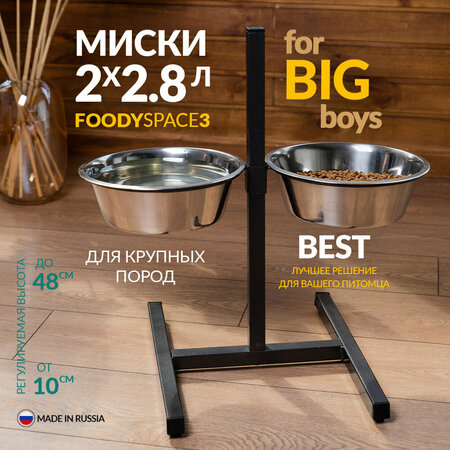 Подставка для мисок для собак DOGGY S является лучшим решением для вашего питомца. Стойка с мисками для собак объемом 2800 мл подходит для собак крупных пород, таких как- Мастиф,- Дог,- Доберман,- Хаски,- Борзая,- Бладхаунд,- Алабай,- Бернский зенненхунд и т. д. Миски для собак располагаются на регулируемом штативе. Вы можете установить высоту от 11 до 53 сантиметров. Собрать кормушку с мисками для собак вы сможете всего за 2 минуты. Мы позаботились о наших клиентах и в каждый комплект мы кладем шестигранный ключ, с помощью которого вы сможете крепко зафиксировать стойку при сборке. Основание имеет специальные противоскользящие резиновые крепления, что помогает избежать скрипа и делает конструкцию более устойчивой.