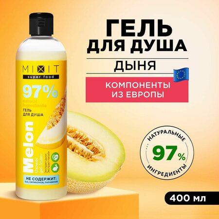 Миксит Нежная гель-пена для душа 2 в 1 (очищающий гель для душа и пена для ванны) бережно очищает, не нарушая правильный гидролипидный баланс. Увлажняющий гель для интенсивного ухода за кожей тела, рук и ног обеспечивает глубокое очищение организма и тела человека, увлажнение и питание. Парфюмированный гель для мытья и купания с запахом экзотических фруктов – лучшая антистресс ароматерапия в собственной ванне. Сладкий аромат дыни дарит чувство радости и энергии. Детокс средство с экстрактами дыни и папайи обеспечивает нежность, эластичность и упругость. Цитрусовый гель для ухода за собой на каждый день дарит естественное сияние и блеск, не сушит и не стягивает кожу. Энергетический женский гель для душа содержит натрия хлорид, антибактериальные и органические компоненты. Натуральная уходовая косметика MIXIT подходит для проблемной, жирной, сухой, чувствительной, молодой, возрастной и обезвоженной кожи. Гель gel shower в бутылке имеет экологичный состав и большой объём, которого хватит надолго. Экстракт дыни содержит активный комплекс витаминов и микроэлементов, оказывает антиоксидантное и лимфодренажное действие, ускоряет восстановление и омоложение клеток. Экстракт папайи помогает для отшелушивания мертвых клеток, выравнивания тона и рельефа кожи, очищения и сужения пор, стимулирует регенерацию и укрепление клеток. Результат после очищающего геля для душа: свежая и чистая кожа без сухости и шелушений. Способ применения: нанесите средство на мочалку или влажную кожу тела, вспеньте, смойте теплой водой или добавьте небольшое количество пены под струю воды при наполнении ванны. Подходит для ежедневного использования как гель для душа или пена для ванны. Подари себе наслаждение после трудного дня вместе с гель-пеной для ванны и душа дыня от MIXIT. Для лучшего эффекта применяйте вместе со скрабом (266406129) и кремом (288907592), маслом для тела (185186678). Товары для красоты на водной основе от брендовой российской профессиональной косметики – хорошие новогодние подарки для девочек, подростков, девушек, женщины. Косметические средства – полезный подарок на новый год. Подарочный гель для всей семьи – лучший сюрприз для праздника лучшей подруге на день рождения, любимой маме на 8 марта, другу на день святого Валентина, бабушке, сестре, учителю.