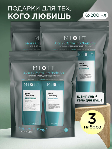 Миксит Мужской косметический набор для ухода за кожей тела и волосами MIXIT Men's Cleansing Body & Hair Beauty Box. В бьюти бокс входят парфюмированный мягкий гель для душа и восстанавливающий шампунь. Спа средства для ежедневного применения имеют свежий парфюмерный аромат. Гель моментально освежает и тонизирует, обеспечивает эффективное очищение, увлажнение сухих локонов и восстановление водного баланса. Шампунь для укрепления поврежденных и мелированных волос увлажняет и очищает кожу головы. Натуральный увлажняющий состав подходит для всех типов волос, кудрявых и вьющихся, жирных и окрашенных. Премиум уходовая профессиональная косметика – новогодний подарок. Идеален для подростка на день рождения или новый год.