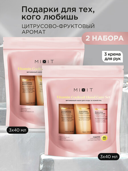 Миксит Бьюти бокс для женщин и мужчин для ухода за кожей рук. В косметический комплект входит два набора Vitamin Cocktail Hand Care Set. В одной упаковке три крема Moisturizing, Renewing и Nourishing Hand Cream. Подарок для девушки или девочки подростка на день рождения. Мужской и женский новогодний beauty box. Комплекс уходовой косметики для подруги или мамы на Новый год ( нг) и день рождение ( др ). Спа средства обеспечивают восстановление, питание и увлажнение, а также дарят нежный аромат. Подростковая профессиональная натуральная продукция сестре. Подходит для ежедневного применения. Активный состав интенсивно увлажняет и делает кожу мягкой. Подарок на новый год женщине, маме, девушке, подруге, девочке сестре, бабушке. Подарочный набор новогодний жене, рождественский, на день рождение, нг 2025, др, Рождество.