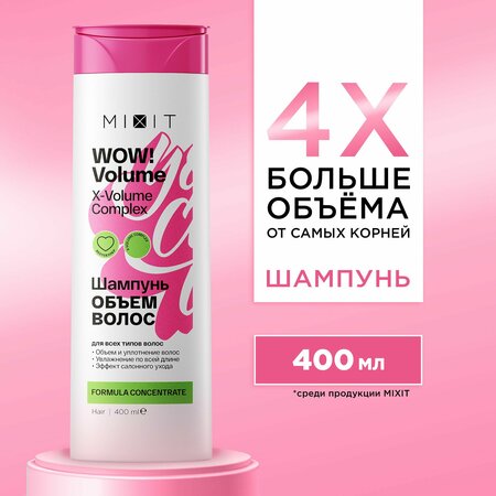 Миксит Очищающий шампунь для создания головокружительного прикорневого объема и уплотнения волос WOW! Volume X-Volume Complex Shampoo 400 мл. Уходовое средство бережно очищает и увлажняет кожу головы, возвращает здоровый блеск и придает невероятный объем. Укрепляет пушистые и ослабленные пряди от корней до кончиков, придает гладкость и сияние, как после салона. Восстанавливает волосы после завивки, избавляет от пушистости, ломкости и секущихся кончиков. Питательный шампунь эксперт с натуральным и активным составом без силиконов. Салициловая кислота обеспечивает легкое расчесывание непослушных, густых и длинных прядей, делает жесткие волосы мягкими. Экстракт орхидеи направлен на сос лечение ломких и ослабленных локонов, укрепление защиты и разглаживание пористых прядей. Также экстракт орхидеи придает головокружительный объем тонким прядям. Комплекс AHA-кислот отшелушивает и очищает волосы от корней до кончиков. Способ применения: на влажные волосы нанести парфюмированный шампунь архитектор, помассировать и смыть водой. Кислотный эко шампунь подходит для частого использования. Результат: очищение и питание, объем у корней, эффект счастья для волос, сохранение природной красоты, свежие и гладкие волосы, экспресс реконструкция структуры поврежденных прядей. Укрепляющий проф шампунь подходит для всех типов волос: нормальных и сухих, жирных и комбинированных, волнистых и вьющихся, кудрявых и кучерявых, осветленных и мелированных, окрашенных и нарощенных. Разглаживающий шампунь реконструктор для брюнеток и блондинок холодного блонда и кудрей, седых и рыжих, темных и светлых локонов. Дешевый подарок для девушки подростка, любимой жены или мамы ко дню рождения. Премиум сюрприз жене на день рождения. Лечебный жидкий шампунь для взрослых и подростков, мужчин и женщин. Русские косметические органик средства для всей семьи на каждый день. Парфюмерные био средства для душа и ванны. Российские товары не тестируются на животных.
