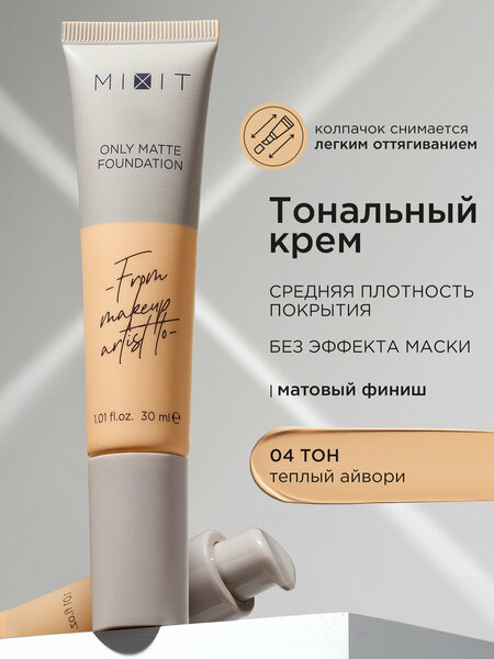 MIXIT Тональный крем для лица. Матирующая декоративная косметика для макияжа MAKE UP, 04