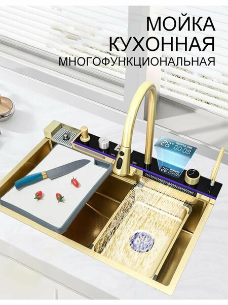 Мы предлагаем вам многофункциональную кухонную стальную раковину - идеальное решение для кухонного пространства. Умная раковина изготовлена из нержавеющей стали, которая отличается прочностью и устойчивостью к повреждениям и коррозии. Антибактериальное нанопокрытие и врезная конструкция обеспечивают легкую очистку. Он легко моется и не впитывает запахи, что делает его очень подходящим для использования на кухне. Раковина имеет стильный и изящный дизайн, который позволяет расширить пространство и сделать его более изысканным и сдержанным. Раковина оснащена функцией водопада, и есть два разных потока воды - большой и малый, которые можно переключать с помощью кнопок. Устройство контроля температуры раковины со встроенным экраном и смесителем с постоянной температурой обеспечивает комфортную эксплуатацию раковины. Удобный смеситель выдвигается на 60 см и вращается на 360 градусов, что значительно облегчает процесс стирки. Выдвижная конструкция с двумя направляющими позволяет модифицировать встроенную раковину в соответствии с вашими потребностями, такими как ополаскивание и замачивание посуды, мойка и нарезка овощей и фруктов и т. д. В комплект поставки входят дуршлаг (съемная чаша), разделочная доска и дренажные принадлежности. Кроме того, наши уникальные кухонные принадлежности оснащены встроенным краном, фильтром для питьевой воды, устройством для промывки стекла и дозатором мыла.