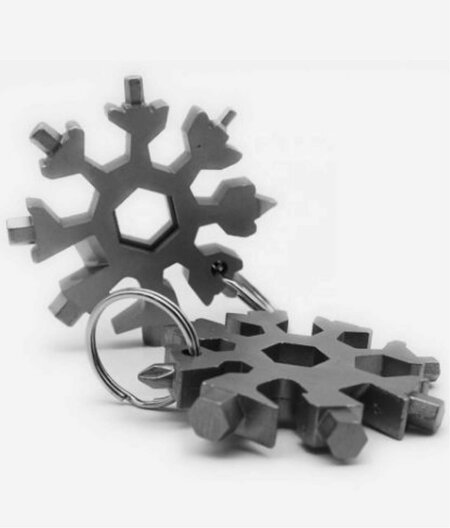 Мультитул- брелок "Снежинка" 18 в 1 - это всем необходимый набор не только в походе, но и в обычной жизни. Это компактный набор необходимых ключей, который можно носить с собой, как брелок! Каждый инструмент имеет более 12 видов применения. Также есть небольшой нож для открытия коробок и открывашка для бутылок. Мультитул пригодится велосипедистам, туристам в походе и всем, кто хочет иметь под рукой небольшую отвертку и гаечные ключи. Характеристика: Материал: нержавеющая сталь. Вид: снежинка. Особенности: брелок.
