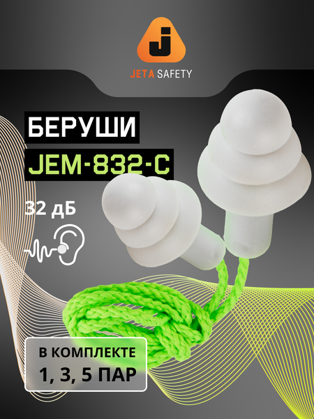 Противошумные многоразовые беруши с соединительным шнурком JEM-832-С X-Fit 32дБ из термопластичной резины, - 1 пара в пластиковом боксе.