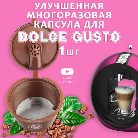 Многоразовая капсула Дольче Густо Dolce Gusto нового поколения поможет приготовить ароматный кофе с более насыщенным вкусом и пенкой благодаря оптимизированной системе подачи воды, фильтру из нержавеющей стали и клапану регулировки давления. Многоразовые капсулы для кофе Dolce Gusto подходят для кофеварок использующих капсулы для кофе системы Nescafe Dolce Gusto. Капсула Dolce Gusto это реальная находка которая позволит наслаждаться любимым кофе. Многоразовая капсула Дольче густо прекрасная альтернатива одноразовым оригинальным капсулам с кофе т. к. позволяет сократить стоимость чашки более чем в 5-6 раз по сравнению с оригинальными одноразовыми капсулами с кофе В капсулах можно делать какао зеленый чай матча или использовать как заварник для черного или зеленого чая и готовить кофе без кофеина. Вы не зависите от поставок оригинальных капсул т к можете использовать свой любимый сорт молотого кофе из магазина или кофейни. Капсулы Дольче Густо совместимы почти со всеми типами кофемашин, использующих капсулы Dolce Gusto, обратите внимание на слайд о совместимости! Капсулы Dolce Gusto Rich Crema не совместимы с кофемашинами Bosch Tassimo, Nespresso Vertuo, Nespresso Original Lavazza Blue и др В комплект входит: капсула многоразовая 1шт, инструкция по qr коду. Рекомендуем попробовать наш новый продукт молотый кофе премиум, класс Specialty, производится по госту, помол кофе средний, подобран специально под использование с многоразовыми капсулами, ищите кофе по запросу кофе молотый Sompa.