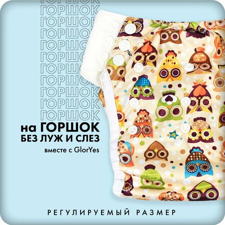 Многоразовые трусики для приучения к горшку GlorYes! Совы 10-20 кг + бамбуковый вкладыш