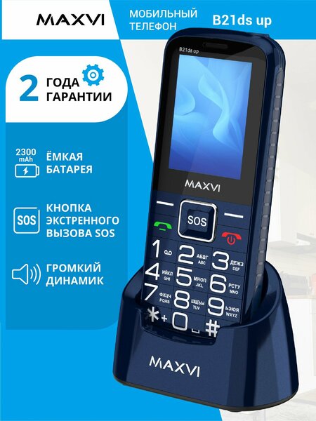 Мобильный телефон Maxvi B21ds up - это улучшенная версия модели Maxvi B21ds. У Maxvi B21ds up значительно увеличена ёмкость аккумулятора (с 1600 mAh до 2300 mAh), благодаря чему Вам обеспечена надежная связь до 460 часов в режиме ожидания и до 20 часов в режиме непрерывных разговоров. Также привычный разъём для зарядки Micro-USB заменён на более современный и универсальный стандарт Type-C.