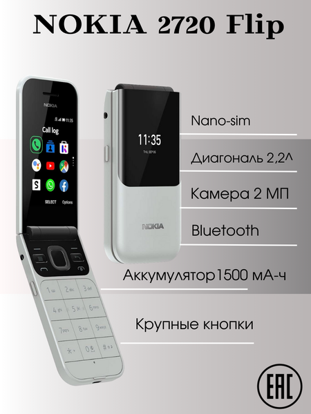 Nokia 2720 Flip - это стильный и компактный раскладной кнопочный телефон, который обладает всеми необходимыми функциями для комфортного использования в повседневной жизни. Nokia 2720 Flip оснащен ярким и четким дисплеем с разрешением 320x240, что позволяет просматривать текст и изображения с высокой детализацией. Большие кнопки на внутренней части делают его удобным для набора сообщений и звонков. Встроенный FM-радио и Bluetooth для беспроводного соединения с другими устройствами, а также слот для карты памяти microSD и поддержка двух SIM-карт делают его многофункциональным. Nokia 2720 Flip также оснащен камерой с тыловой вспышкой и основной камерой с разрешением 2.0 МП, что позволяет делать яркие фотографии и видеозаписи. Телефон имеет прочный и надежный корпус из пластика, а его аккумулятор емкостью 1500 мАч обеспечивает до 463 часов работы в режиме ожидания. Время заряда составляет всего 1,5 часа, а разъем для зарядки - micro-USB. В целом, Nokia 2720 Flip - это отличный подарок для школьников, родителей, бабушек и дедушек, а также для тех, кто ищет простой и надежный телефон с функциями, необходимыми для повседневного использования.