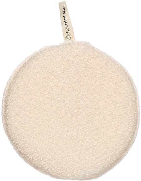 Мочалка для мытья лица и тела, с держателем. Размер: 13 см. Материал: сторона с текстурированной поверхностью - полиэстер - 41%, нейлон - 31%, хлопок - 28%, сторона с мягкой поверхностью - хлопок - 80%, полиэстер - 20%, наполнитель внутри мочалки - полиуретан. Материал содержит антимикробную добавку, обеспечивающую постоянную защиту от бактерий, а значит сохраняет чистоту и свежесть ткани в течение всего срока службы. Двусторонняя технология: одна сторона с текстурированной поверхностью, похожей на люфу - для более глубокой очистки кожи тела, вторая сторона - мягкая гладкая поверхность из хлопкового волокна для деликатного ухода, которая отлично подходит для ухода за кожей лица. Характеристики: идеально подходит для очистки всего тела; уникальная текстурированная поверхность - обладает массажным эффектом, мягко отшелушивает кожу, придает коже гладкость и свежесть, помогает в борьбе с целлюлитом, создает насыщенную пену. Срок службы зависит от част