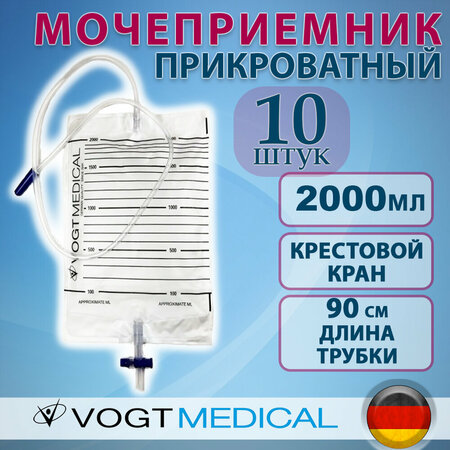 Мочеприемники прикроватные предназначены для забора мочи через катетер из мочевого пузыря. Преимущества: Универсальный переходник позволяет надежно подключиться к мочевому катетеру. Устойчивая к перегибам отводная трубка (90 см) позволяет удобно разместить мочеприемник, а усиленные крепежные отверстия на мешке - зафиксировать в вертикальном положении мочеприемник. Мешок мочеприемника оснащен специальным невозвратным клапаном, который предотвращает обратный ток мочи, значительно снижая риск развития восходящей инфекции. Объем собранной жидкости легко считывается со шкалы, расположенной на передней полупрозрачной стороне мочеприемника. Сливной кран позволяет производить отбор проб мочи на анализ и опорожнять прикроватный мочеприемник по мере необходимости. Мочеприемник состоит из: универсальный переходник. мешок для забора мочи с клапаном. отводной трубки 90 см. сливной кран. Материал изготовления: поливинилхлорид (ПВХ). Объем - 2000мл.