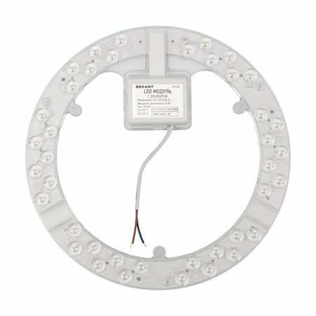 Светодиодный модуль с линзами и драйвером REXANT используется в качестве источника света для настенно-потолочных светильников. Возможна установка в светильники как с пластиковыми, так и со стеклянными плафонами. Магнитные опоры позволяют закрепить светодиодный модуль с драйвером без применения винтов, избежав сложного монтажа. Клеммная колодка позволяет в считанные минуты осуществить монтаж модуля в светильник. Для регулировки мощности не нужен пульт: быстрое и удобное диммирование через выключатель позволяет сэкономить на покупке дорогостоящего диммера. Технические характеристики: Тип источника света: LEDСветовой поток: 3120 ЛмМощность светильникат: 36 ВтДиммируемый: даУгол рассеивания: 250 градусовКоррелированная цветовая температура (в сфере): 2700-6500 К(АС) 230 В/50 ГцДиапазон напряжения питания: 220-240 Вtc=75 °CКласс защиты от поражения током: IIТемпературный режим: +5.+40 °CКласс защиты: IP20Коэффициент пульсации: <5%Класс энергоэффективности: AГабаритные размеры: 210х25 ммКоэффициент мощности: >0.9Материал рассеивателя: светопропускающий пластикЦвет корпуса: белый Технические характеристики: Цвет Белый Ширина 210 мм Высота 25 мм Диаметр 210 мм Длина 210 мм Тип напряжения AC (перемен.) Степень защиты (IP) IP20 Способ подключения Подключение путем обжима Угол светового пучка 250 Degrees Форма Круглый (-ая,-ое) Подходит для светофоров Нет Подходит для различных дорожных знаков Нет Подходит для железных дорог Нет Подходит для матричных информационных табло / дисплеев Нет Подходит для общего освещения Нет Подходит для постоянного тока (стабилизация выходного тока) Нет Подходит для постоянного напряжения (стабилизация выходного напряжения) Нет Требуется внешний драйвер Нет Средн. номин. срок службы 30000 ч Цветовая температура 2700 К Количество светодиодов 40
