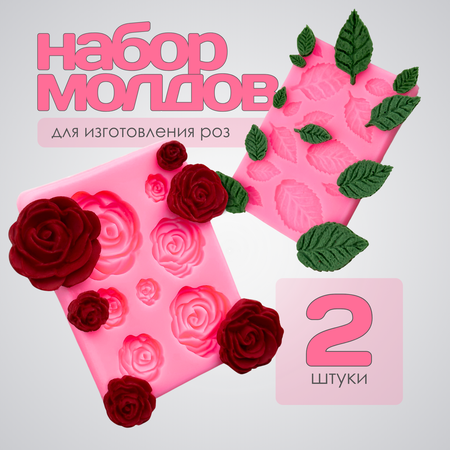Универсальные молды из пищевого силикона в наборе из двух штук - прекрасный инвентарь для любителей кулинарии, рукоделия и творчества. Прямоугольные изделия с формами в виде цветков роз и листьев большого и маленького размера незаменимы для изготовления красивых украшений для тортов, шоколадных конфет и других сладостей, свечей и мыла, а также гипсовых изделий ручной работы. Благодаря высокому качеству пластичного силикона изготовление восковых или мыльных фигурок и креативных десертов, а также создание объемных декоративных поделок превратится в простой и интересный процесс. Многоразовые силиконовые формочки розового цвета, выполненные из пластичного материала подойдут для лепки реалистичных цветочков с листвой дома, на кулинарных или творческих курсах. Инвентарь для приготовления кондитерских изделий, создания гипсовых заготовок и изделий из эпоксидной смолы, а также мыловарения и заливки глазури и льда обязательно оценят все - взрослые женщины и девушки, подростки и дети - девочки и мальчики. Такая кухонная принадлежность, позволяющая делать заготовки для поварской работы, незаменима на домашней и профессиональной кухне. Силиконовые молды, благодаря которым можно создавать красивые розочки с листиками - это интересный женский или детский подарочный сюрприз для взрослого человека или ребенка, подруги или дочери, увлекающейся кулинарией или творчеством на любой праздник.