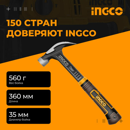 Молоток-гвоздодер 560 гр. SUPER INGCO HCH81020L INDUSTRIAL - это ручной ударный инструмент с плоским круглым бойком с одной стороны, а также гвоздодером - с другой. Молоток имеет цельнометаллическую конструкцию и трехкомпонентную прорезиненную рукоятку для удобного и надежного хвата. Инструмент широко используется в сфере столярных работ. Линейка: INDUSTRIAL Модель: SUPER INGCO HCH81020L Тип товара: Молоток-гвоздодер Вес бойка: 560 г Общая длина 360 мм Форма бойка: круглый 35 мм Боек - углеродистая сталь марки 45, кованая головка Материал рукояти: металлический с прорезиненным хватом. Габариты: 360х145х37мм Упаковка: пакет Вес: Нетто - 1 кг, брутто - 1,2 кг. Параметры упакованного товара: Длина - 37 см, Ширина - 15 см, Высота - 5 см.