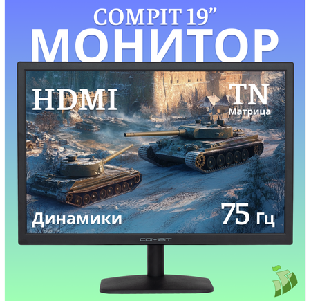 Монитор для ПК COMPIT 19" TN WXGA+ 1440x900 60Гц HV1900 – Ваш надежный выбор для работы и развлечений! Ищете монитор, который идеально подойдет для дома или офиса, обеспечивая высокое качество изображения и удобство использования? Представляем вам монитор COMPIT HV1900 – универсальное решение для любых задач! Основные характеристики: Диагональ экрана: 19 дюймов Разрешение: WXGA+ 1440x900 пикселей Частота обновления: 60 Гц Тип матрицы: TN, обеспечивающая быстрый отклик и яркость изображения Яркость: 250 кд/м² Покрытие экрана: Матовое, для минимизации бликов и комфортной работы даже при ярком освещении Встроенные динамики: Позволяют наслаждаться звуком без необходимости подключать внешние колонки Преимущества: Четкость изображения: TN-матрица обеспечивает быстрый отклик и яркие цвета, делая этот монитор отличным выбором для работы, игр и просмотра мультимедиа. Эргономичный дизайн: Регулируемая подставка позволяет настроить угол наклона экрана, обеспечивая максимальный комфорт во время использования. Гибкость установки: Монитор легко устанавливается на подставку или может быть закреплен на стене с помощью стандартного крепления VESA 75х75 мм, что делает его идеальным для любого рабочего пространства. Матовое покрытие: Экран с матовым покрытием минимизирует блики и отражения, что особенно важно при длительной работе или просмотре контента. Универсальные интерфейсы: Подключение через HDMI и VGA позволяет использовать монитор с различными устройствами, как современными, так и устаревшими. Идеально подходит для: Дома и офиса: Компактный размер и высокое разрешение делают этот монитор идеальным для повседневных задач, таких как работа с документами, интернет-серфинг и просмотр видео. Игр: Частота обновления 75 Гц и быстрая TN-матрица обеспечивают комфортный игровой процесс без задержек. Дизайна и работы с графикой: Точные и яркие цвета, высокая четкость изображения делают монитор подходящим для работы с графическими приложениями и дизайном. Гарантия и надежность: Монитор COMPIT HV1900 поставляется с гарантией 1 год, что подтверждает его высокое качество и долговечность. Не упустите возможность приобрести монитор COMPIT HV1900 и улучшить свой рабочий процесс, наслаждаясь яркими и четкими изображениями каждый день. Закажите сейчас и получите удобство и качество по доступной цене!