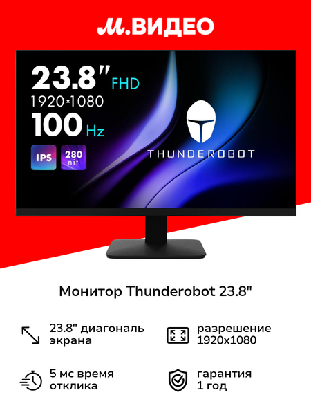 Частота обновления дисплея 100 Гц 24" IPS-дисплей c разрешением Full HD Технология Low Blue Light Отсутствие ШИМ Игровой монитор Thunderobot DF24H100 - модель в корпусе черного цвета габаритными размерами 39,4х53,8х19 см, весом - 2,8 кг. На 23,8-дюймовый (60 см) IPS-экран формата 16:9 выводится изображение разрешением 1920х1080 пикселей, яркостью 280 кд/м² и контрастностью 1000:1. Частота обновления составляет 100 Гц, что исключает появление разрыва кадров. Широкие углы обзора (по 178°) позволяют смотреть контент с любой части помещения. Матовое покрытие исключает появление бликов. Используемая в устройстве технология Low Blue Light защищает глаза от воздействия вредных лучей. Показатель потребляемой мощности равен 24 Вт. К доступным интерфейсам относятся вход D-Sub видео, HDMI. Установка производится на настольную подставку. Фиксация на стену осуществляется на кронштейн VESA 100x100. Доступно регулирование угла наклона монитора от -5° до +20°.