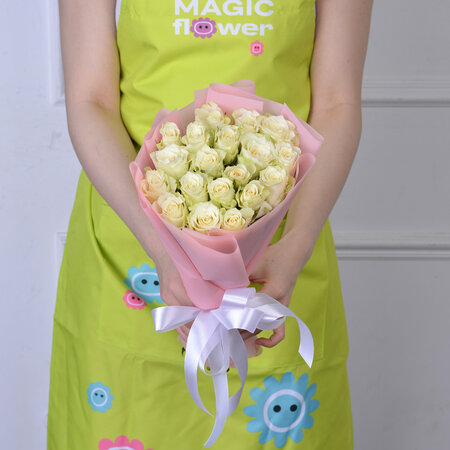 Монобукет Magical Flower, 19 белых роз, размер 40 см, высота 40 см