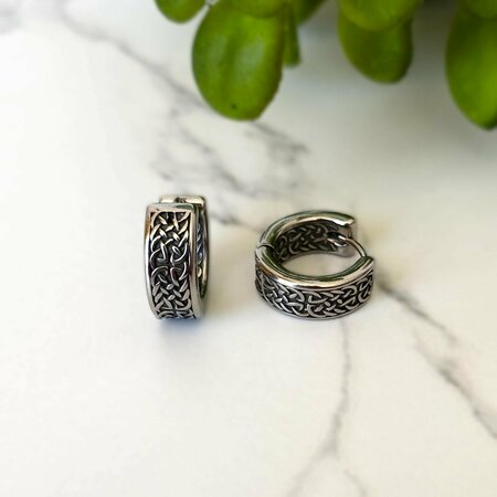 Размер изделия: общая длина, ширина (диаметр) серёжки – 1.6см, ширина сережки - 0.6см. Вес - 3.9гр.(одна хупа). Вид замка – конго. Цвет - серебристый, серебро. Скандинавский символ, славянский амулет жизни, кельтский узор защиты.